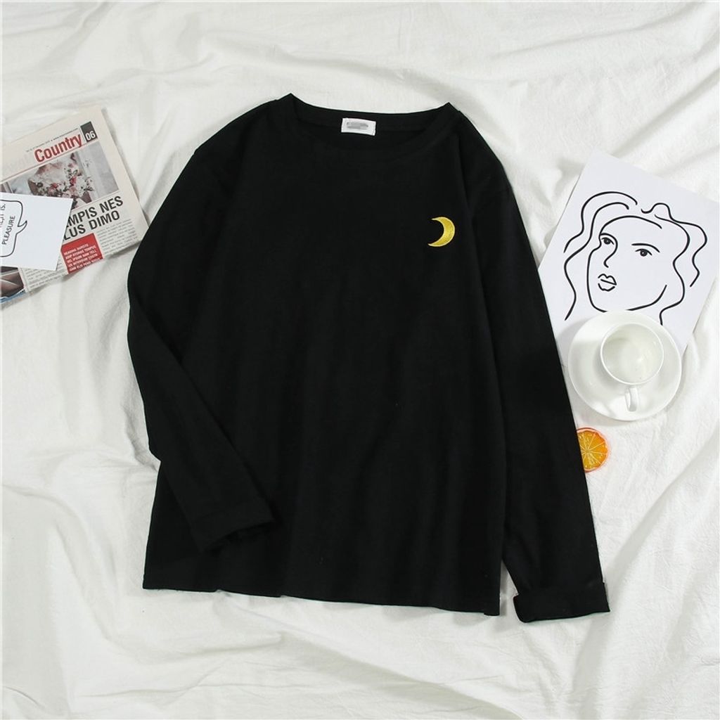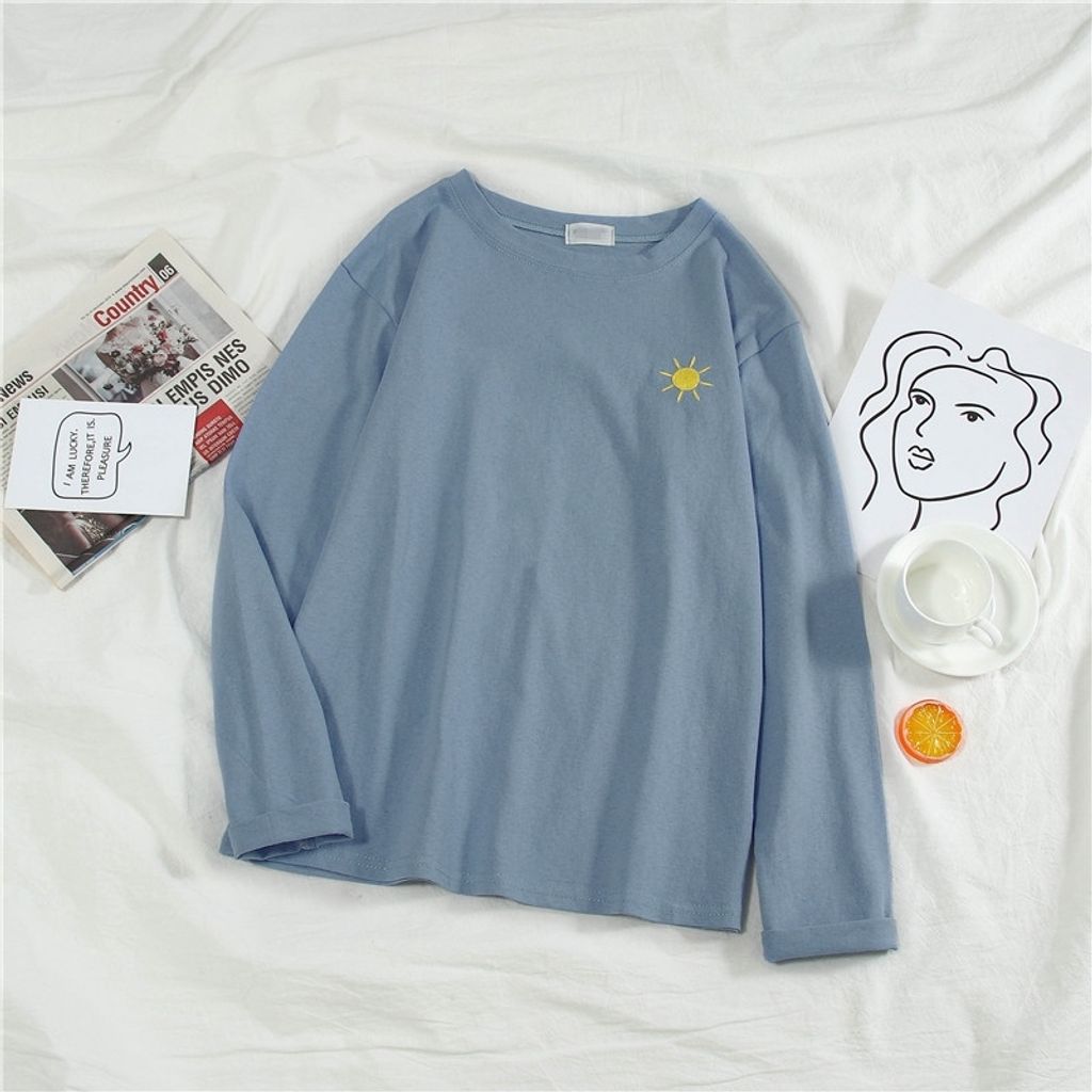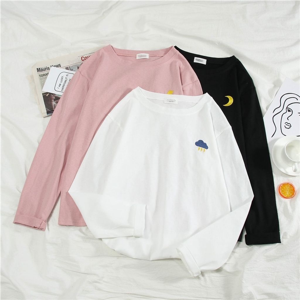 Ready Stock New Korean Women's Round Neck Loose Tide T-shirt Long Sleeve